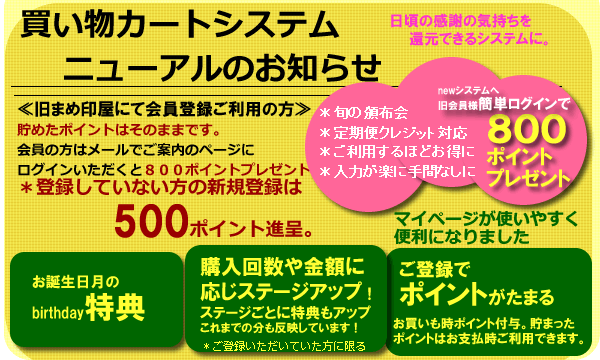 【店主の経歴】 民間企業の総務・行政機関や飲食関係現場を経験後 6年間勤めた広告代理店勤務時代地元での取材などがきっかけで別の角度から山形の素晴らしさが改めてみえてくる。 まだインターネットがではじめの時代これからはこの媒体だと勉強をはじめ同時に食材豊富な山形で食にかかわる仕事をしたいとう思いから 人脈づくりと食を仕事にする具体的な方法を体験したく東京服部学園内で開催されていた藤原校長のフード(ビジネス)コーディネータースクールに入学。スクールでは食のさまざまな分野の第一線で活躍する方々にお会いする機会をもちCM作成ほか食ビジネスの現場を肌で経験する機会に恵まれる。大好きな料理研究家有元先生とお会いできたり 濱田ひろみ先生(20数年間大手食品会社のCM作りに携わり1998年に電通賞最優秀賞を受賞)に料理を習ったり CM作成の現場にお伺いする機会にも恵まれた。その間約2年間横浜に住み情報インプット期となる。 その後地元山形にもどりNHKで3年間 イベントや番組広報誌・テレビスポット制作など広報全般の仕事に関わりながらウェブ制作の勉強を開始。 そして 山形の隠れた魅力をを自分なりにアウトプットしたく2004.2月独立。 山形の安全な食のwebサイト「まめ印屋」 手仕事ぎゃらりー「ゆき椿」運営。 2004年 地元民報テレビ局提携サイトで食に関する取材やコラムを担当。 2004年 手仕事ぎゃらりーゆき椿オープン。イベント開催。 2005年6月 食のサイトすろー風土台所まめ印屋オープン。 2010年6月 みなさまのおかげで今年12回目をむかえた。 雨にうたれ嵐に巻き込まれても・・沈没することなく 今では おかげ様で向かってくる風をも うまく利用して前へ進める店になりました。 2012年全国の六千人を超すお客様に支えられております。いいお客様に恵まれ、今があることにこころから感謝申し上げます。(2017年現在2万人のお客様にご利用いただいています) なんでもそうだがノウハウ書にない「やってみてはじめて わかる事がわかること」を日々実感しながら いつのまにか実績を重させていただいています。