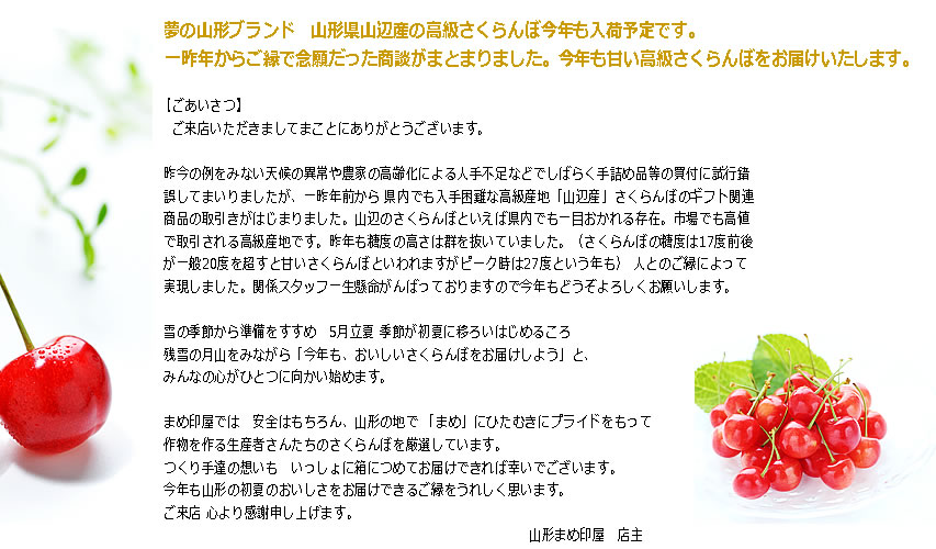| 山形さくらんぼ佐藤錦販売 〜高級さくらんぼ産地直送 赤い宝石「佐藤錦」「紅秀峰」「大将錦」を本場山形から直送いたします。 |
