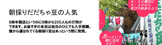 ただちゃ豆の収獲時期、地元産直所では朝6時前からだだちゃ豆を買い求めるひとが行列を成します。