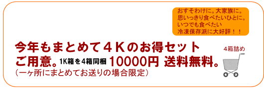 | たっぷり2K入り 約12人分。4人でたっぷり2度楽しめます。 |