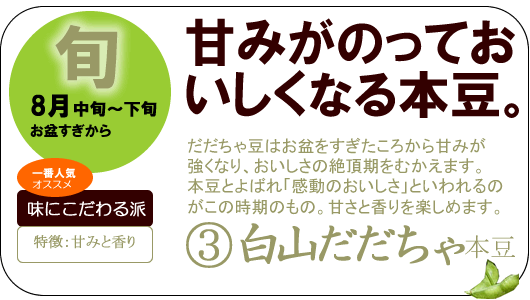 おいしさイチオシ! ●本 豆(品種:白山だだちゃ) 発送時期 8月15日〜8月下旬頃