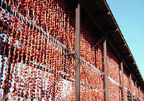上山市の関根地区といわれる地域は 伝統的な干柿の産地です。紅柿は「紅干柿」平核無柿は「蔵王つるし柿」の名称で県内外にひろく出荷されています。