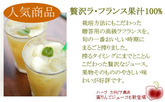 「蜜りんご」は、ステビア農法で栽培された農家さんの蜜りんごをまるごと搾りました。
