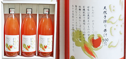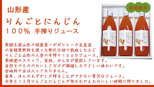 | 1000cc×3本入り / 原材料:山形産ふじ林檎とにんじん |