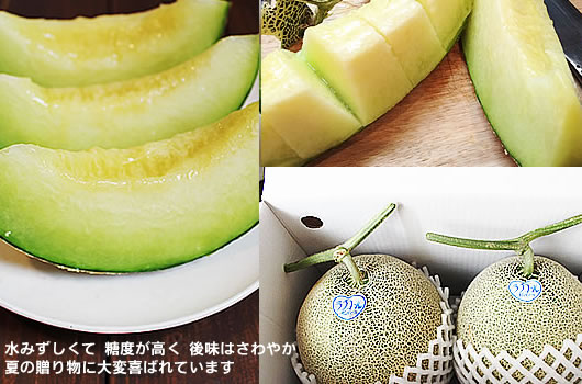 | お中元に山形県の砂丘メロンはいかがですか。夏の贈り物。ご家庭での食後の果物。お客さまへ冷やしておいしいメロンでおもてなし。 |